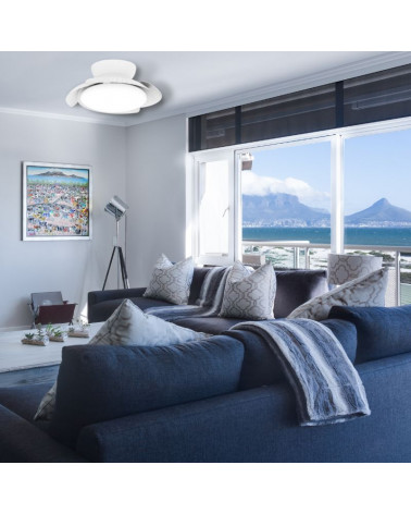The Ceiling Fan LED Aloha White also stands out for its energy efficiency. It uses a low-consumption DC motor, very quiet and with 3 different speed modes and a sleep mode that can be controlled remotely.